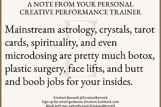 Mainstream astrology, crystals, tarot cards, and spirituality are pretty much botox, plastic surgery, face lifts, and butt and boob jobs for your…